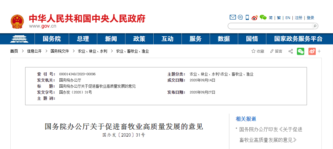 國務(wù)院辦公廳日前印發(fā)《關(guān)于促進(jìn)畜牧業(yè)高質(zhì)量發(fā)展的意見》。...