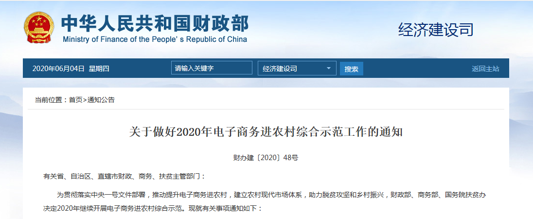 6月1日,財(cái)政部發(fā)布關(guān)于做好2020年電子商務(wù)進(jìn)農(nóng)村綜合示范工作的通知。《通知》提出,大力發(fā)展農(nóng)村電子商務(wù),促進(jìn)形成農(nóng)產(chǎn)品進(jìn)城和工業(yè)品下鄉(xiāng)暢通、線上線下融合、涉......