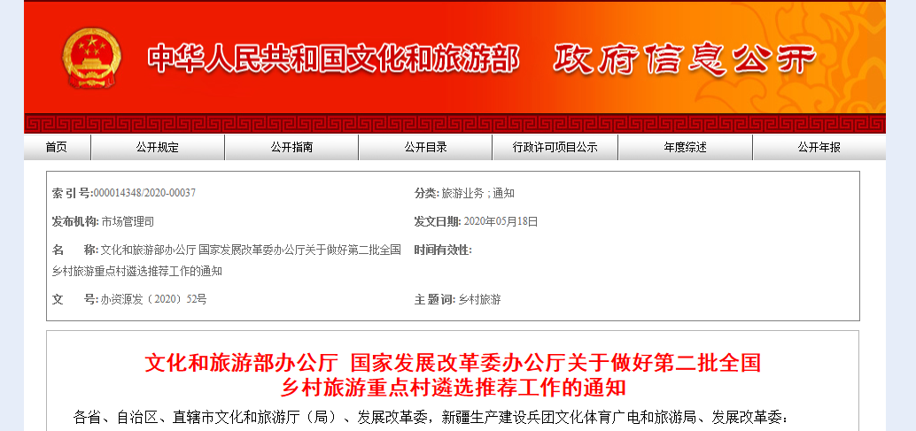 文化和旅游部辦公廳 國(guó)家發(fā)展改革委辦公廳關(guān)于做好第二批全國(guó)鄉(xiāng)村旅游重點(diǎn)村遴選推薦工作的通知...