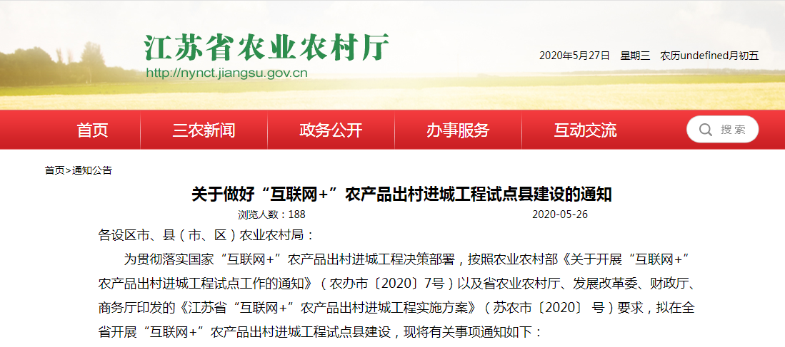 為貫徹落實(shí)國(guó)家“互聯(lián)網(wǎng)+”農(nóng)產(chǎn)品出村進(jìn)城工程決策部署,按照農(nóng)業(yè)農(nóng)村部《關(guān)于開(kāi)展“互聯(lián)網(wǎng)+”農(nóng)產(chǎn)品出村進(jìn)城工程試點(diǎn)工作的通知》(農(nóng)辦市〔2020〕7號(hào))以及省農(nóng)業(yè)......