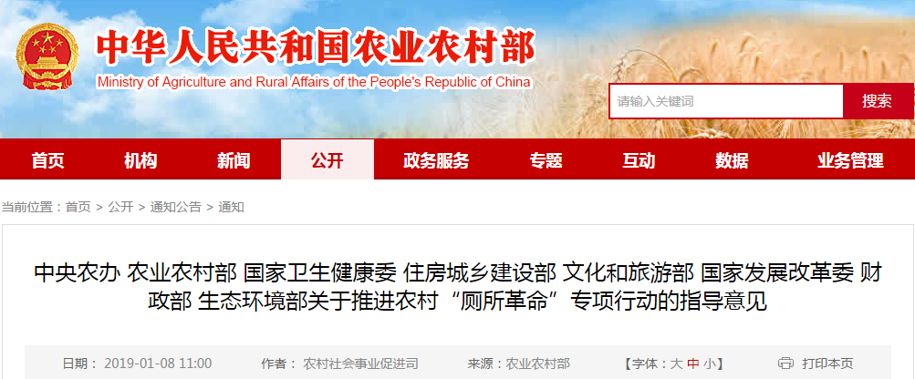 中央農(nóng)辦 農(nóng)業(yè)農(nóng)村部 國(guó)家衛(wèi)生健康委 住房城鄉(xiāng)建設(shè)部文化和旅游部 國(guó)家發(fā)展改革委 財(cái)政部 生態(tài)環(huán)境部關(guān)于推進(jìn)農(nóng)村“廁所革命”專項(xiàng)行......