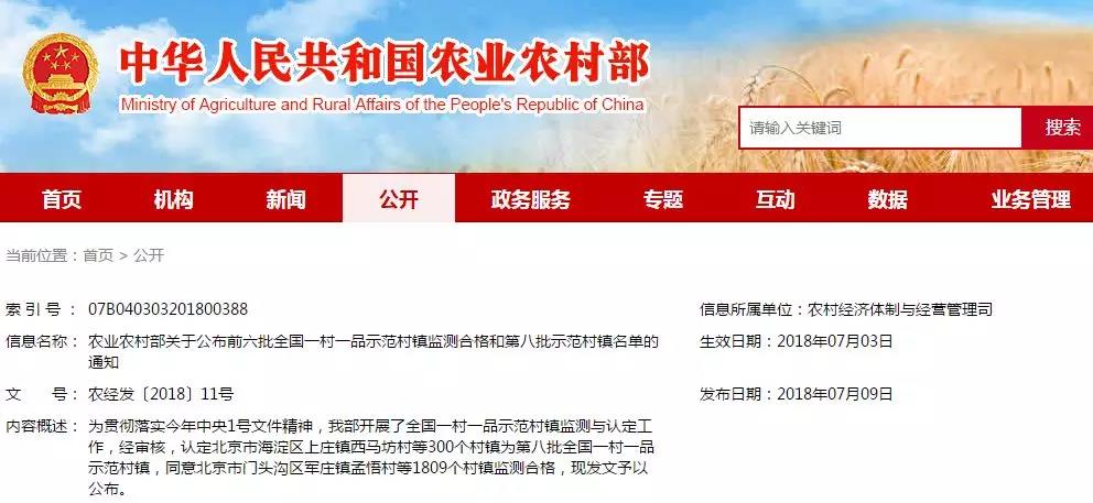 近日,農(nóng)業(yè)農(nóng)村部發(fā)布《關(guān)于公布前六批全國一村一品示范村鎮(zhèn)監(jiān)測合格和第八批示范村鎮(zhèn)名單的通知》 ...