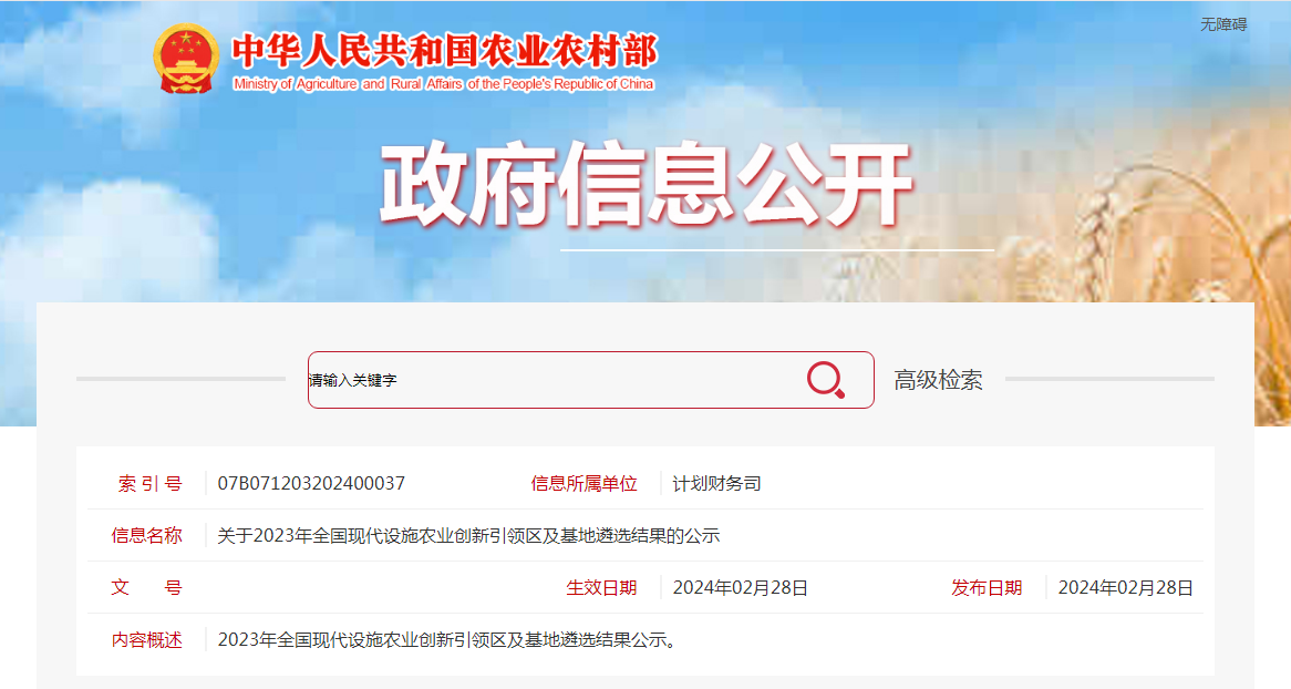 根據(jù)《農(nóng)業(yè)農(nóng)村部辦公廳關(guān)于開(kāi)展2023年全國(guó)現(xiàn)代設(shè)施農(nóng)業(yè)創(chuàng)新引領(lǐng)區(qū)及創(chuàng)新引領(lǐng)基地遴選工作的通知》(農(nóng)辦計(jì)財(cái)〔2023〕26號(hào))要求,經(jīng)有關(guān)省份農(nóng)業(yè)農(nóng)村部門(mén)推薦、......