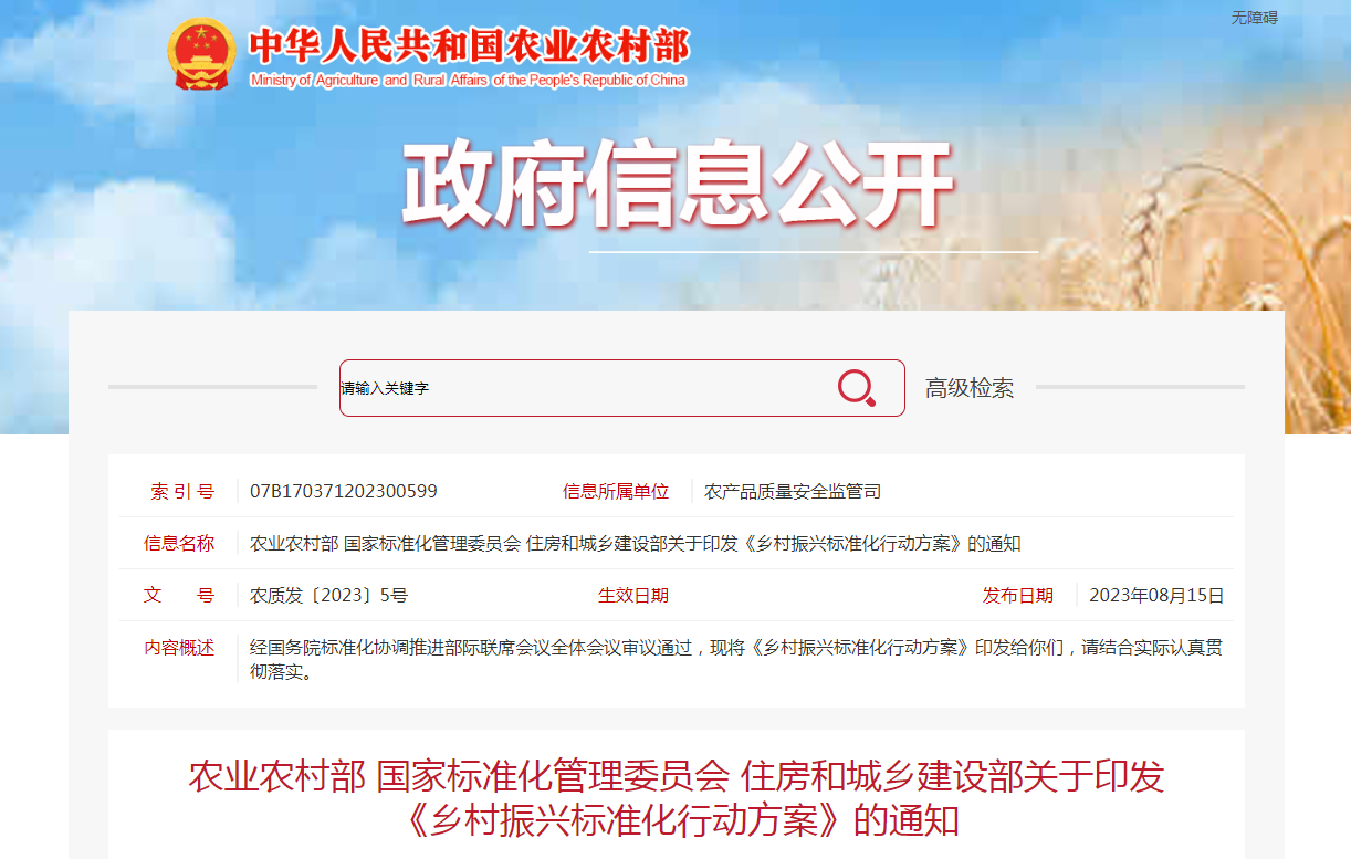 經(jīng)國務(wù)院標(biāo)準(zhǔn)化協(xié)調(diào)推進部際聯(lián)席會議全體會議審議通過,現(xiàn)將《鄉(xiāng)村振興標(biāo)準(zhǔn)化行動方案》印發(fā)給你們,請結(jié)合實際認真貫徹落實。農(nóng)業(yè)農(nóng)村部 國家標(biāo)準(zhǔn)化管理委員會 住房......