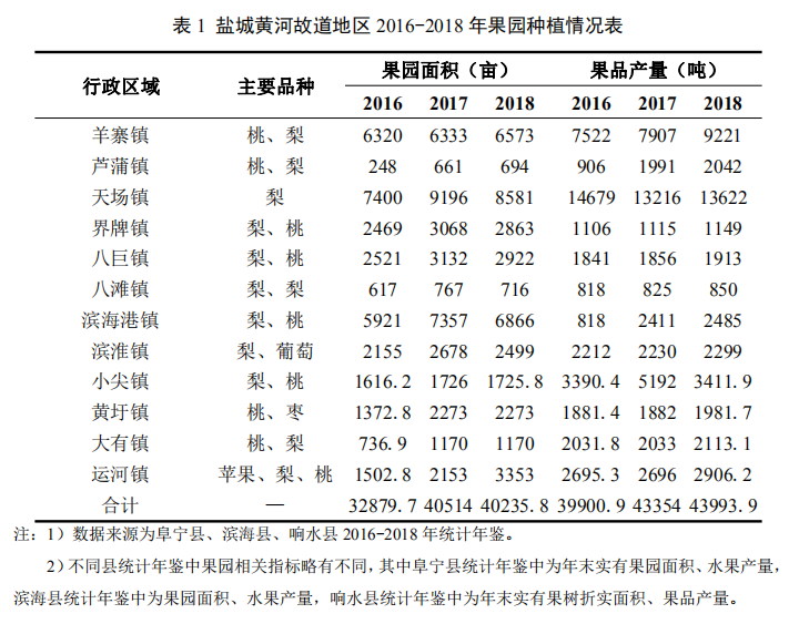 十九屆五中全會提出在“十四五”時期,要優(yōu)先發(fā)展農(nóng)業(yè)農(nóng)村,全面推進鄉(xiāng)村振興。而產(chǎn)業(yè)興旺作為鄉(xiāng)村振興的重要引擎,是實現(xiàn)農(nóng)民增收、農(nóng)業(yè)發(fā)展和農(nóng)村繁榮的基礎。近年來,黃河故道地區(qū)高度重視林果產(chǎn)業(yè)發(fā)展工作,將林果產(chǎn)業(yè)作為助推農(nóng)民增收、加快農(nóng)村經(jīng)濟發(fā)展的重要產(chǎn)業(yè)之一。其中,山東冠縣依托梨產(chǎn)區(qū)優(yōu)勢,不斷優(yōu)化梨產(chǎn)業(yè)品種結(jié)構(gòu),積極創(chuàng)建鴨梨品牌,并借勢“中華第一梨園”生態(tài)旅游品牌,加快農(nóng)旅融合發(fā)展;河南虞城田廟鄉(xiāng)以果為媒,積極建設優(yōu)質(zhì)水果生產(chǎn)基地,建成多個林果村,同時策劃梨園旅游線路、梨園廣場、果品交易中心等,全力打造“虞北果鄉(xiāng)、梨花小鎮(zhèn)”;安徽碭山縣大力發(fā)展酥梨產(chǎn)業(yè),并通過促進水果精深加工、倉儲及物流一體化融合,發(fā)展鄉(xiāng)村旅游來增加酥梨產(chǎn)業(yè)的附加值;而鹽城黃河故道地區(qū)作為鹽城市重要的林果生產(chǎn)區(qū),因地制宜發(fā)展特色果樹,推廣果樹栽培新技術(shù),使廣大果農(nóng)得到實惠,經(jīng)濟狀況得到改善,并逐步形成濱?,F(xiàn)代農(nóng)業(yè)園區(qū)萬畝蜜梨基地、黃圩千畝黃桃基地、七套十里桃源等特色果品基地,果品生產(chǎn)已成為當?shù)剞r(nóng)村經(jīng)濟的支柱產(chǎn)業(yè),經(jīng)濟和社會效益良好,但同時,當?shù)亓止a(chǎn)業(yè)發(fā)展也面臨一些問題和挑戰(zhàn)。為促進林果產(chǎn)業(yè)的提檔升級,本文將針對鹽城黃河故道林果產(chǎn)業(yè)的發(fā)展現(xiàn)狀,對林果產(chǎn)業(yè)的優(yōu)勢與機遇、劣勢與挑戰(zhàn)進行全面分析,并探索林果產(chǎn)業(yè)未來的發(fā)展路徑。