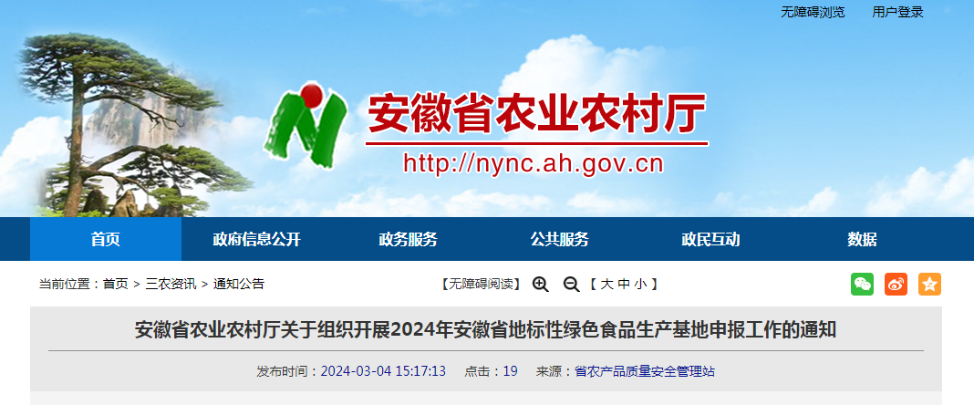 各市、縣(市、區(qū))農(nóng)業(yè)農(nóng)村局:根據(jù)《安徽省農(nóng)業(yè)農(nóng)村廳關(guān)于印發(fā)安徽省地標性綠色食品生產(chǎn)基地建設(shè)管理辦法(試行)的通知》(皖農(nóng)綠〔2024〕13號 )要求,現(xiàn)就開展......