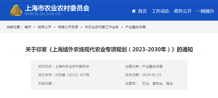 各相關(guān)單位:??為推動上海域外農(nóng)場農(nóng)業(yè)高質(zhì)量發(fā)展,根據(jù)市政府辦公廳《關(guān)于促進上海域外農(nóng)場高質(zhì)量發(fā)展的實施意見》(滬府辦發(fā)〔2022〕20號)要求,我委組織編制了......