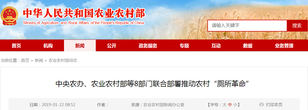 近日,中央農(nóng)辦、農(nóng)業(yè)農(nóng)村部、國(guó)家衛(wèi)生健康委、住房城鄉(xiāng)建設(shè)部、文化和旅游部、國(guó)家發(fā)展改革委、財(cái)政部、生態(tài)環(huán)境部等8部委聯(lián)合印發(fā)了《關(guān)于推進(jìn)農(nóng)村“廁所革命”專項(xiàng)行動(dòng)......
