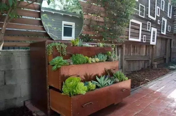 從掛盆、梳妝臺、水管到抽屜,真的是奇思妙想天馬行空。這樣設(shè)計垂直綠化,同時帶有裝飾性和實用性的作用,而且制作簡單便宜??赐瓯疚?,就別再找任何借口了,趕快動起來,讓你的院子或陽臺充滿生機和活力!