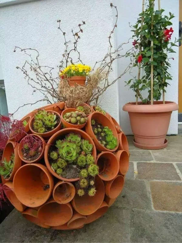 把多余剩余的水溝管道拿出來,或者到附近的一些廢品店收購一些廢棄的管道,砸開兩半,掛起來種花吧。