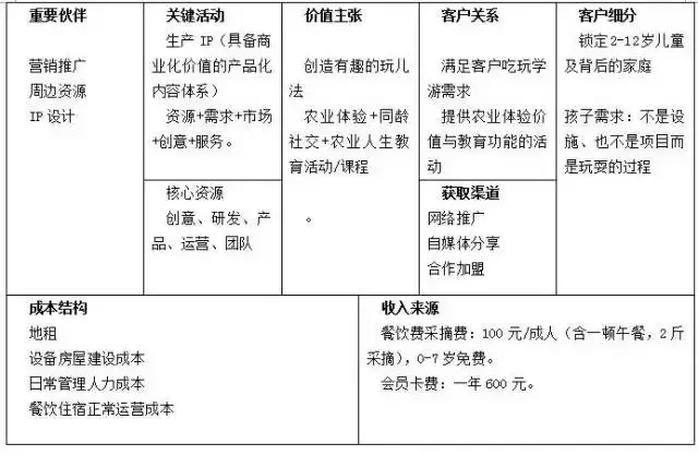莊絡(luò)農(nóng)場商業(yè)模式畫布