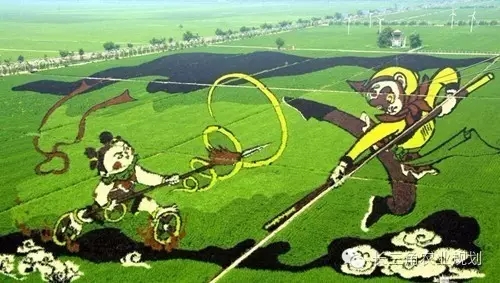 稻田畫又名稻田彩繪,是日本農(nóng)民創(chuàng)作的一種藝術(shù)形式,主要是在水田中種植綠色和紫色葉水稻,栽種時(shí)先在農(nóng)田里用傳統(tǒng)畫線器畫出九宮格,依圖樣定出坐標(biāo),再牽線描出圖樣或字體輪廓,最后種上彩色秧苗,隨著水稻生長(zhǎng),就會(huì)呈現(xiàn)出預(yù)先規(guī)劃的圖形或文字。