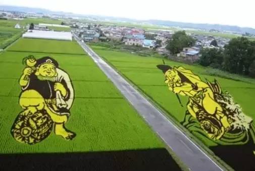 日本的稻田藝術(shù)是通過插播、套種等方式將稻田在大地上呈現(xiàn)出預(yù)先設(shè)計(jì)好的圖案,在作物成長不同階段,顏色不斷變化,形成四時(shí)之景不同的景象。其創(chuàng)作題材豐富,囊括風(fēng)景、人物、動漫等。