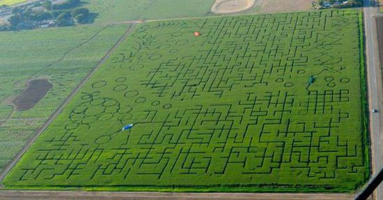 美國玉米種植面積大,有著自然條件優(yōu)越的玉米生產(chǎn)帶。而美國人在玉米田中創(chuàng)造出了一種娛樂方式——玉米迷宮。在種植玉米之前,先設(shè)計(jì)好一個(gè)迷宮圖案,按圖案種植玉米,等待玉米長成后,變?yōu)橐粋€(gè)玉米迷宮,供游人娛樂參與。目前,玉米迷宮已經(jīng)發(fā)展到加拿大、意大利、英國等國家。