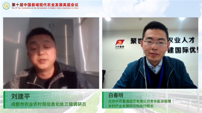 圓桌會(huì)議2由中農(nóng)富通鄉(xiāng)村產(chǎn)業(yè)發(fā)展研究院執(zhí)行院長白春明主持,會(huì)議圍繞“市縣域農(nóng)業(yè)農(nóng)村信息化建設(shè)推進(jìn)模式”這一主題展開討論。特邀嘉賓有豐信農(nóng)業(yè)科技服務(wù)有限公司董事長董金峰、成都市農(nóng)業(yè)農(nóng)村局信息化推進(jìn)處調(diào)研員劉建平、國家農(nóng)業(yè)信息化工程技術(shù)研究中心主任助理吳建偉、聯(lián)通(山西)產(chǎn)業(yè)互聯(lián)網(wǎng)有限公司運(yùn)城分公司總經(jīng)理張連爭、北京興農(nóng)豐華科技有限公司創(chuàng)始人兼總經(jīng)理張俊青。各位嘉賓分別從理論到實(shí)踐,結(jié)合具體案例,為我們分享了縣域數(shù)字農(nóng)業(yè)農(nóng)村的建設(shè)成果、全產(chǎn)業(yè)鏈精細(xì)管控,農(nóng)業(yè)信息化項(xiàng)目介紹和推廣運(yùn)營模式、鄉(xiāng)村經(jīng)濟(jì)體與生產(chǎn)關(guān)系等農(nóng)業(yè)農(nóng)村信息化建設(shè)的推進(jìn)現(xiàn)狀、取得的成效、存在的問題及發(fā)展模式等。與會(huì)嘉賓的探討指出,農(nóng)業(yè)專業(yè)社會(huì)化服務(wù)、返鄉(xiāng)創(chuàng)業(yè)新農(nóng)人、全產(chǎn)業(yè)鏈大數(shù)據(jù)的建設(shè)以及智慧園區(qū)建成后的運(yùn)營管理等方面都對(duì)縣域?qū)用娴霓r(nóng)業(yè)農(nóng)村信息化建設(shè)和發(fā)展具有很大影響。