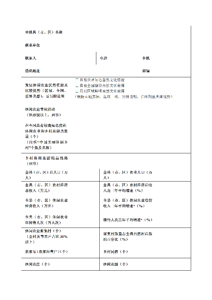 附件:全國休閑農(nóng)業(yè)重點(diǎn)縣申報(bào)表