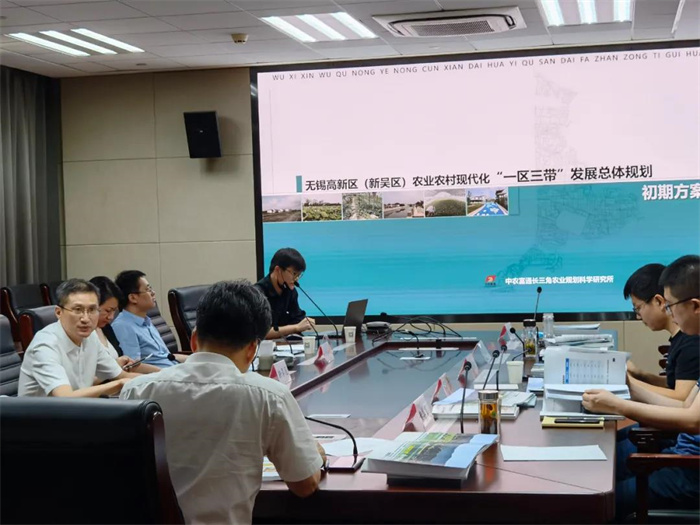 2021年8月20日下午,由中農(nóng)富通長(zhǎng)三角農(nóng)業(yè)規(guī)劃科學(xué)研究所(以下簡(jiǎn)稱(chēng)研究所)承擔(dān)的《無(wú)錫高新區(qū)(新吳區(qū))農(nóng)業(yè)農(nóng)村現(xiàn)代化“一區(qū)三帶”發(fā)展總體規(guī)劃》(以下簡(jiǎn)稱(chēng)規(guī)劃)項(xiàng)目團(tuán)隊(duì)代表新吳區(qū)農(nóng)業(yè)農(nóng)村局向無(wú)錫市農(nóng)業(yè)農(nóng)村局匯報(bào)《無(wú)錫市“五園五區(qū)六帶”發(fā)展規(guī)劃》的階段性成果,匯報(bào)在無(wú)錫市市民中心6號(hào)樓631會(huì)議室。