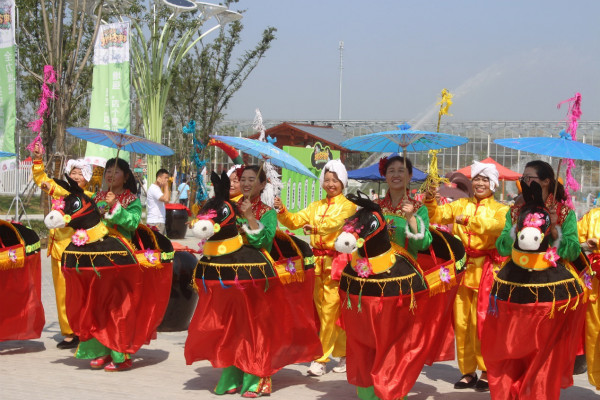 園區(qū)內(nèi)扭秧歌、跑驢等各種形式的民俗表演熱鬧非凡