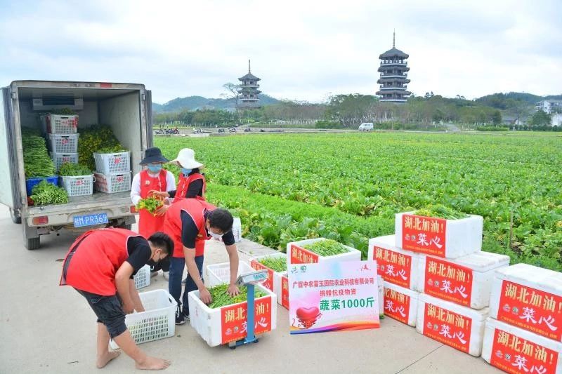 在玉東新區(qū)工委管委的組織下,中農(nóng)富玉聯(lián)合本地的愛心企業(yè)、合作社和愛心人士,向湖北人民捐贈(zèng)新鮮蔬菜和生活物資?!奥牭秸?hào)召給湖北捐贈(zèng)玉林的果蔬后,我們公司當(dāng)即決定參與捐贈(zèng)活動(dòng)?!敝修r(nóng)富玉副總經(jīng)理周靜華告訴記者,"今天他們采摘了將近2500公斤的菜心,分別是中農(nóng)富玉和中農(nóng)富玉組織的一些企業(yè)來捐贈(zèng),統(tǒng)一由相關(guān)部門派送到指定地點(diǎn)。”