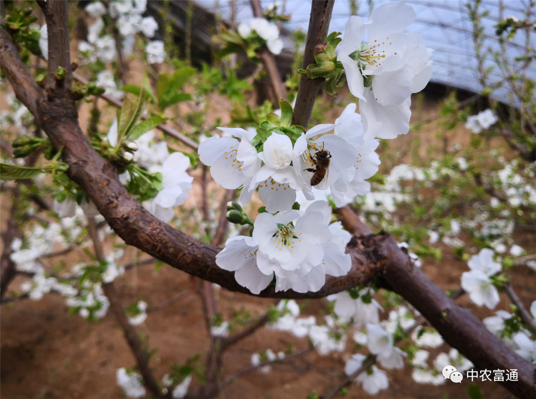 ▼近日,保德縣繁莊塔高新農(nóng)業(yè)科技示范園春意盎然,一簇簇雪白的櫻桃花攀上枝頭,授粉的蜜蜂在朵朵白花間舞動(dòng)。利用設(shè)施保護(hù)地進(jìn)行櫻桃栽培不僅能克服自然條件帶來的危害,而且還能進(jìn)行促成栽培使櫻桃提早上市,提高櫻桃品質(zhì),達(dá)到增收增產(chǎn)的效益。我國(guó)北方地區(qū)發(fā)展櫻桃的設(shè)施栽培對(duì)緩解水果的供應(yīng)淡季、提高經(jīng)濟(jì)效益具有顯著效果。另外還有賞花的效果。