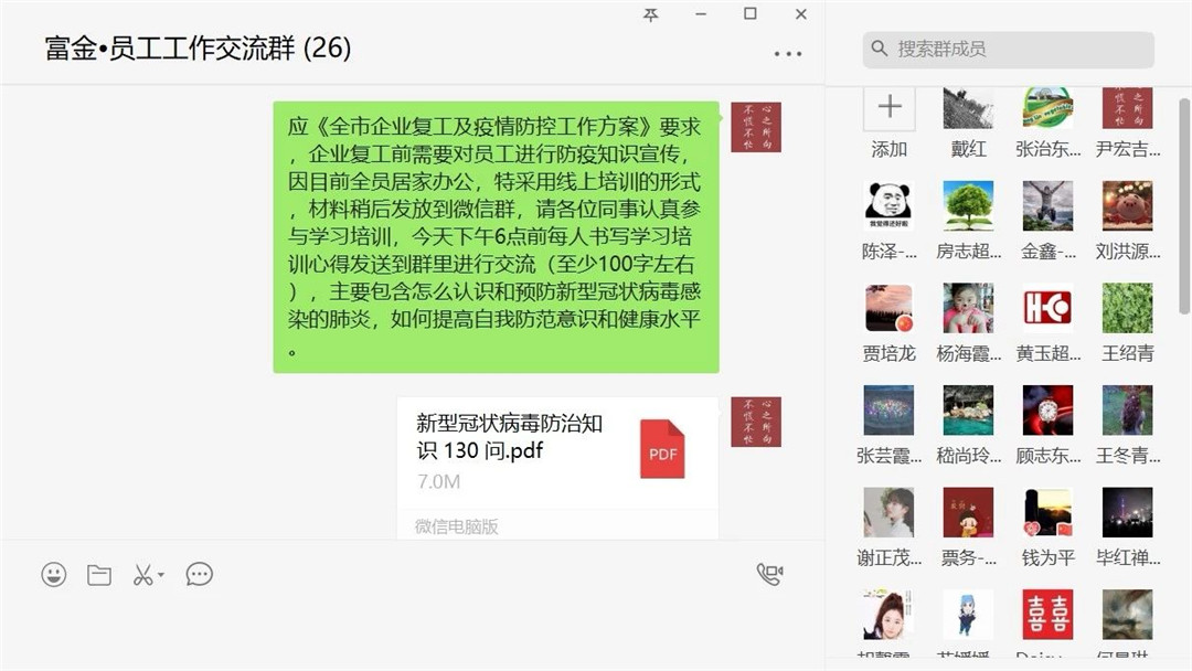 ▼金湖水漾年華積極響應(yīng)政府號(hào)召,嚴(yán)格執(zhí)行落實(shí)《全市企業(yè)復(fù)工及疫情防控工作方案》,抓緊抓實(shí)疫情防控工作不松勁。要求全體員工居家線上辦公,每日?qǐng)?bào)備身體狀況。并通過微信群的形式開展防疫知識(shí)培訓(xùn)學(xué)習(xí),收集有關(guān)安全防疫的文件及視頻,培訓(xùn)后員工在微信群內(nèi)交流心得。園區(qū)成立疫情防控小組,每人都派發(fā)消毒水、口罩、手套,和一定數(shù)量的體溫計(jì)等物資,每天對(duì)園區(qū)進(jìn)行全面消毒,嚴(yán)防死守,復(fù)工前全面做好園區(qū)環(huán)境衛(wèi)生和消毒工作,有序推進(jìn)園區(qū)復(fù)工準(zhǔn)備工作。