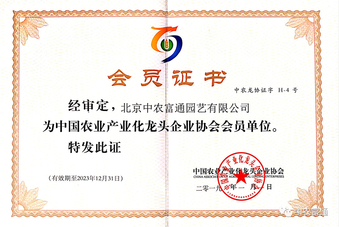 中農(nóng)富通已持續(xù)11年為國家高新技術(shù)企業(yè);在成為北京市農(nóng)業(yè)產(chǎn)業(yè)化龍頭企業(yè)5年后,2019年,中農(nóng)富通成功當選為中國農(nóng)業(yè)產(chǎn)業(yè)化龍頭企業(yè)協(xié)會會員;繼北京、廣西玉林分支機構(gòu)之后,河北邢臺分支機構(gòu)成功獲得市級農(nóng)業(yè)產(chǎn)業(yè)化重點龍頭企業(yè)認定,并榮獲“國家科技中小企業(yè)”;北京兩家分支機構(gòu)雙雙入選北京市設計創(chuàng)新中心,旗下6家分支機構(gòu)順利通過高新技術(shù)企業(yè)認定或復審。