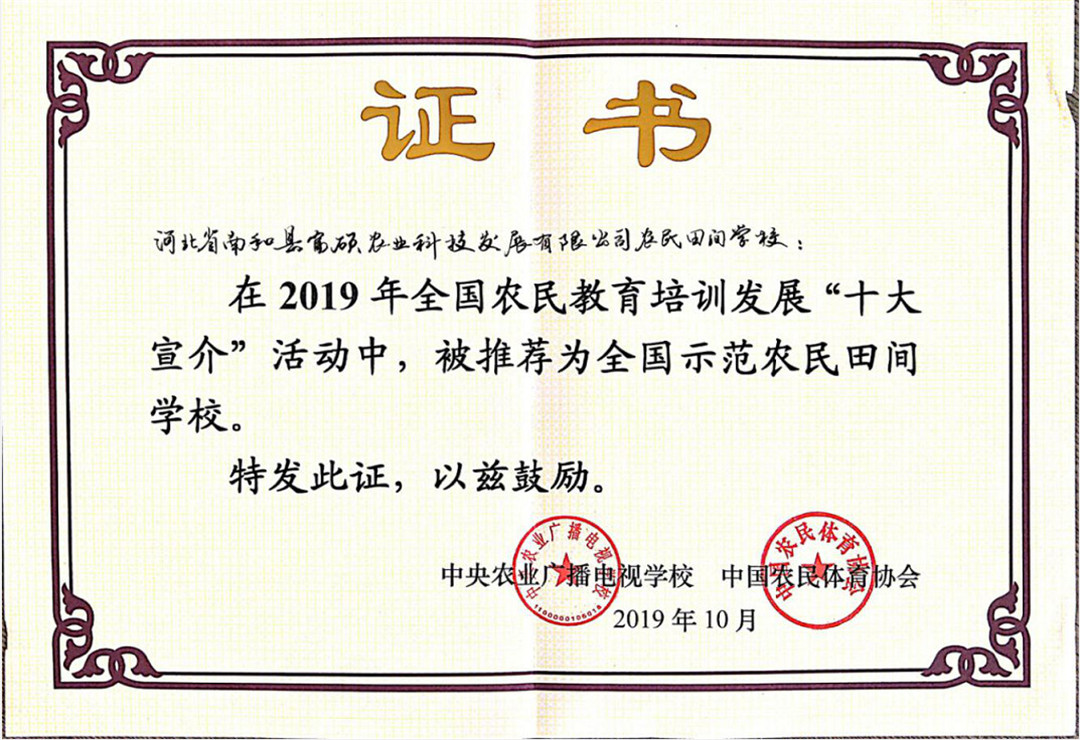 中農(nóng)富通多個示范基地獲評為“高校實踐教育基地”、“高校學生實習基地”、“大學生社會實踐基地”等,助力學生教學培養(yǎng)和農(nóng)業(yè)科技研究。河北邢臺示范基地在成為市級“農(nóng)民田間學校”后進一步榮獲“全國示范農(nóng)民田間學?!奔稗r(nóng)業(yè)農(nóng)村部評選的“100家示范性農(nóng)民田間學校”;北京、河北的示范基地分別被評為 “全國休閑農(nóng)業(yè)與鄉(xiāng)村旅游四星級園區(qū)”“河北省4A級旅游景區(qū)”。此外各示范基地相繼被指定為所在地區(qū)的“農(nóng)業(yè)科技示范基地”“農(nóng)業(yè)實踐基地”“市民學習示范基地”“農(nóng)村基層黨員干部現(xiàn)場教學實踐基地” “高校實踐教育基地”“高校學生實習基地”“大學生社會實踐基地”“科普教育示范基地”“中小學綜合教育實踐基地”等近60 項榮譽。
