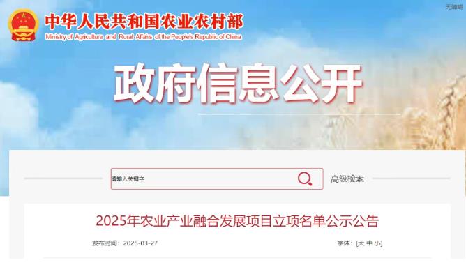 按照《農(nóng)業(yè)農(nóng)村部辦公廳 財(cái)政部辦公廳關(guān)于做好2025年農(nóng)業(yè)產(chǎn)業(yè)融合發(fā)展項(xiàng)目申報(bào)工作的通知》(農(nóng)辦計(jì)財(cái)〔2025〕2號(hào))要求,已按程序完成2025年農(nóng)業(yè)產(chǎn)業(yè)融合發(fā)......