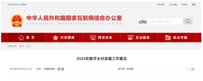 中央網(wǎng)信辦、農(nóng)業(yè)農(nóng)村部、國家發(fā)展改革委、工業(yè)和信息化部近日聯(lián)合印發(fā)《2024年數(shù)字鄉(xiāng)村發(fā)展工作要點》,要求以信息化驅(qū)動引領(lǐng)農(nóng)業(yè)農(nóng)村現(xiàn)代化,促進農(nóng)業(yè)高質(zhì)高效、鄉(xiāng)村......
